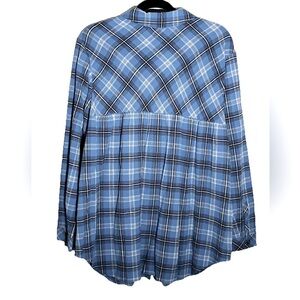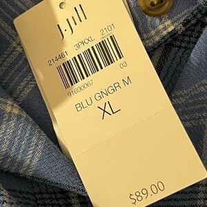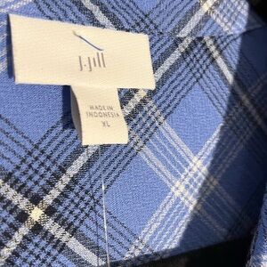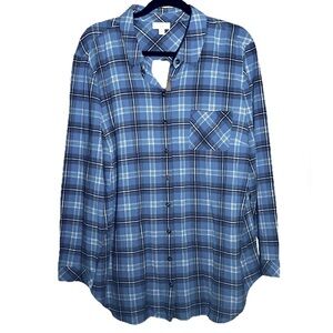J Jill Button Up Flannel Tunic Top Size XL Blue Plaid Country Lagenlook NWT