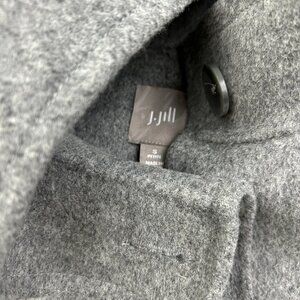 J Jill Button Up Hooded Gray Wool Angora Blend Jacket Soft Size Small Petite