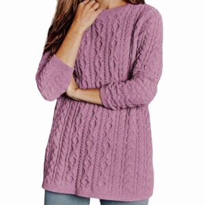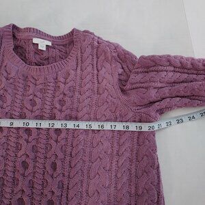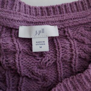 Size medium J Jill Cable Knit Fisherman Chenille Pullover Sweater. 100% polyester. Dusty rose color. Crew neck with ribbed trim at the neckline, cuff and hemline. Knit with plus chenille yarns and classic cable stitches. Pit to pit 21" Pit to sleeve cuff 18.5" Shoulder to hem length 29" Excellent pre-owned condition
