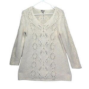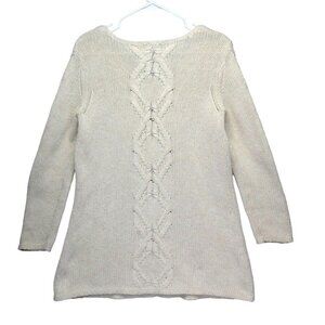 J Jill Cable Knit Sweater Chunky Knit Tunic Size S Petite Sequin Cotton/Wool