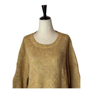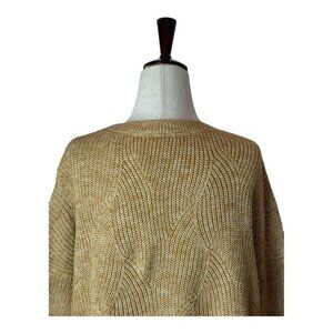 J. Jill Camel Tan Scalloped Ribbed Chunky Knit Drop Sleeve Boxy Sweater Size M