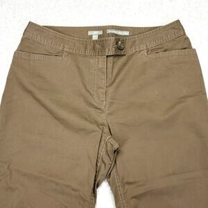 J Jill Capri Pants Womens 10 Brown Cropped Chino Below Waist Stretch Cotton Cuff