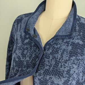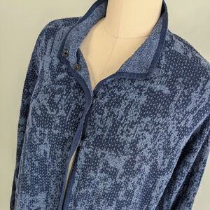 Soft cardigan sweater from J Jill, size large. Cotton blend, collard, snap closure to upper chest then open, abstract print. Hip pockets. Ideal for relaxed, casual elegance, beachy, laggenlook, and coastal vibes. Perfect for fall, winter, layering, business casual, and everyday.