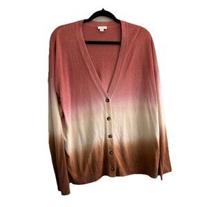 J Jill Cardigan Sweater Ombre Pink Brown Size Large