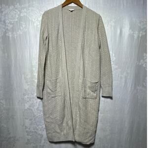 J Jill Cardigan Sweater Small Long Open Cable Knit Beige Oatmeal Duster
