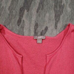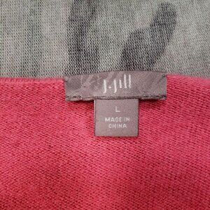J. Jill Cardigan Sweater Womens Large Pink Red Striped Open‎ Front