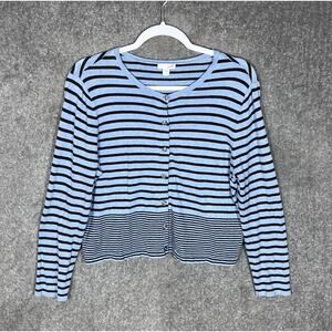 J Jill Cardigan Sweater Womens Size Large Petite Blue Striped Button Up