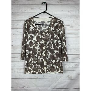 J. Jill Women's Cardigan Sweater Tan floral Long Sleeve Size XS Silk/Cashmere blend