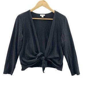 J. Jill Cardigan Top Womens Medium Black Cotton Modal Blend Knot Front