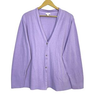 J Jill Cardigan Womens 2X Organic Cotton Lavender Preppy Coquette Cottage Work