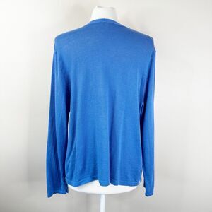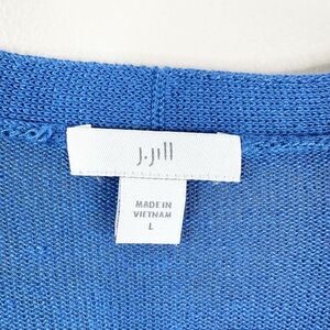 J. Jill Cardigan Womens Large Linen Blend Blue Open Front Long Sleeve Sweater