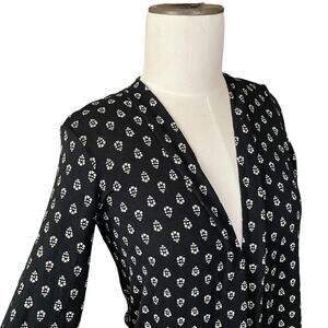 J. Jill Cardigan Womens XS Petite Wearever Collection Open Front Black Geometric
