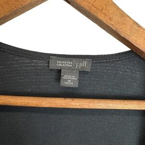 J. Jill Cardigan Women’s sz. Medium Petite Black Stripes Open Front Jacket. In good pre-owned condition.