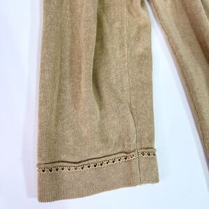 J Jill Cardigan Sweater Linen Women Large Tan Oatmeal Long 3/4 Sleeve