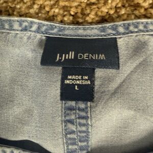 J. Jill Chambray Denim Sun Dress Midi Length Pockets Fringe Womens Size L