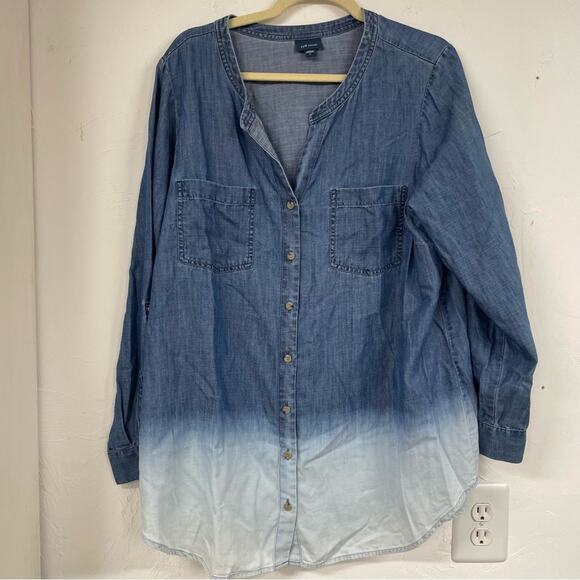 J Jill Chambray Dip Dye Long Sleeve Button Front Blouse L