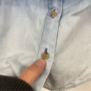 J Jill Chambray Dip Dye Long Sleeve Button Front Blouse Womens L Blue Coastal