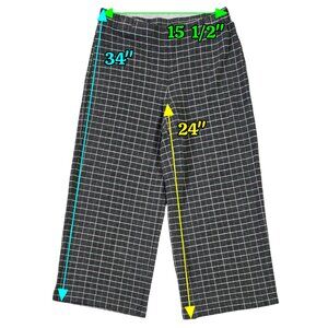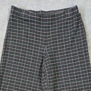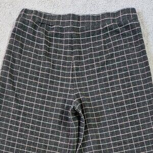Good used condition, with no stains or tears. Preppy grey windowpant pants, made out of a comfortable and stretchy ponte fabric. Pull on style, cropped, wide leg.
