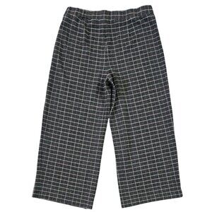 J. Jill Charcoal Gray Windowpane Plaid Full Wide Leg Pull On Cropped Ponte Pant
