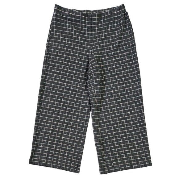 J. Jill Charcoal Gray Windowpane Plaid Full Wide Leg Pull On Cropped Ponte Pant