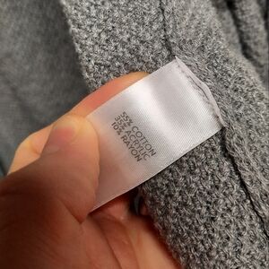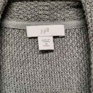 Chic charcoal cardigan with fringe trim. Open front style. Ideal for layering.