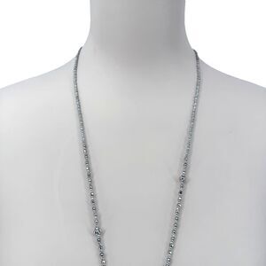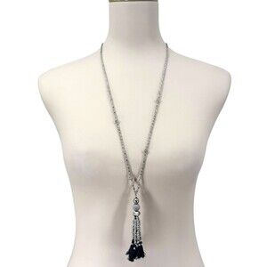 J Jill, J. Jill, womens necklace, long necklace, statement necklace, pendant necklace, boho necklace, bohemian necklace, tassel necklace, beaded necklace, silver tone necklace, silver beaded necklace, charm necklace, geometric necklace, fashion necklace, costume jewelry, designer necklace, trendy necklace, layered look necklace, festival necklace, casual necklace, modern necklace, artsy necklace, unique necklace, navy necklace