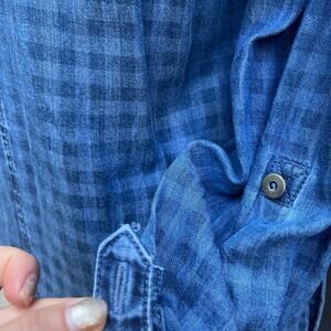 J. Jill Checkered Plaid Denim Chambray Button Front Preppy Casual Shirt Dress XS