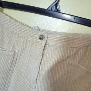 Item: women's incredibly soft wide leg khaki tan beige ribbed pants, maybe corduroy or chenille, nice large front pockets, size 12 petite