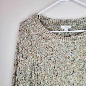 J. Jill Chenille Size L Green Cozy Long Sleeve Sweater With Multi Colored Speckles And Textured Design