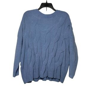 J. Jill Chenille Super Soft Chunky Blue Cable Knit Sweater Size Large Petite