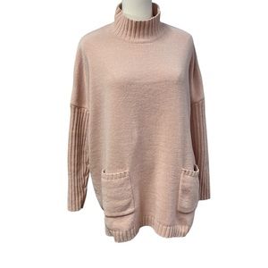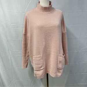 J Jill Chenille Sweater Womens Sz S Baby Pink Drop Shoulder Mock Turtleneck Boxy