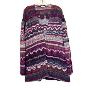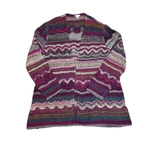 J. Jill Chunky Knit Cardigan Sweater Large Colorful Cozy Oversized Women Boho
