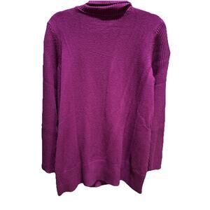 This J. Jill Collection tunic top is a stylish and versatile piece in a solid berry purple color. The tight-knit sweater features a cowl neck and long sleeves, making it perfect for travel, casual outings, or business settings. With a split hem detail, it has a classic and comfortable tunic style, offering a regular fit in size Large. Made from a blend of polyester, nylon, and cotton, this sweater is breathable and stretchy, ideal for the winter, fall, and spring seasons. Perfect for women looking for a cozy and fashionable addition to their wardrobe.