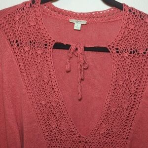 J. Jill Coral Tunic Sweater Crochet Oversized Linen-Cotton Blend Women's Size L