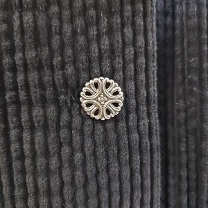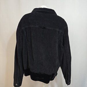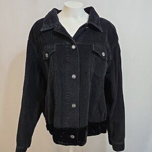 J Jill Corduroy Jacket Womens Size XL Black Trucker Floral Metal Buttons Velour