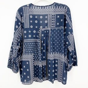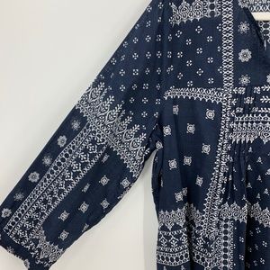 J. Jill Cotton Bandana Print Shirt Navy Blue Sz Large