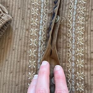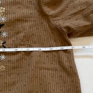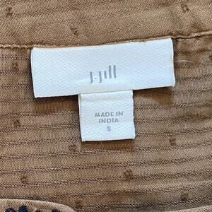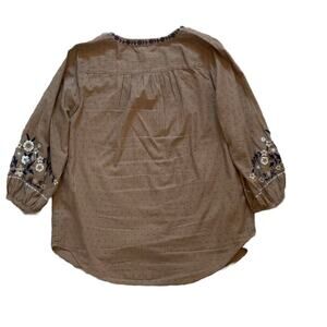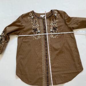 J. Jill Brown Embroidered Floral Swiss Dot Button Down Peasant Blouse, Size S