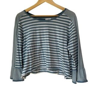 J. Jill Cotton Striped Cropped 3/4 Sleeve Crewneck T-Shirt Jersey, M