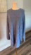 Tunic length blue cotton sweater with crew neck, long sleeves, fringed hemline, and unique button design in back. Small side slits. Excellent used condition.