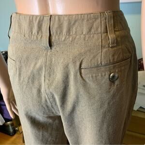 These J. Jill vintage high rise high waisted brown pants are made of 70% cotton, 30% wool. Dry clean. Zip fly and button closure, welt pockets front and back, one of back pockets has a button closure. Belt loops, wide leg.