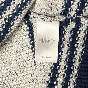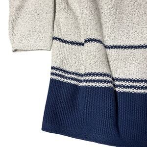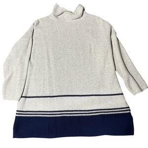 Oversized, boxy, roomy knit sweater with cowl neck. Gray marled knit with blue stripes. Womens size XL