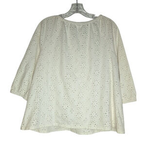J. Jill Cream Cotton Knit Eyelet A-Line Blouse with 3/4 raglan sleeve, size petite medium. Good used condition.