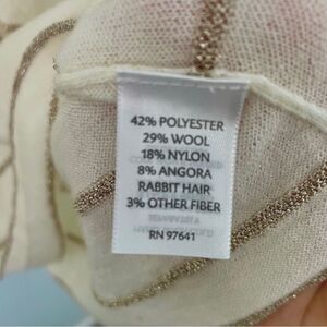 J. Jill Cream Gold Striped Soft Knit Wool Scoop Neck Oversized Sweater Medium