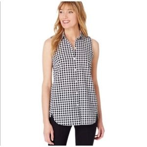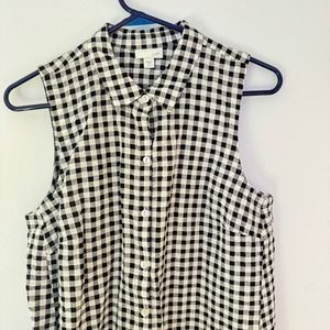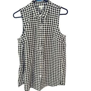 J. Jill Crinkled Gingham Collared Sleeveless Button Down Shirt Size Medium