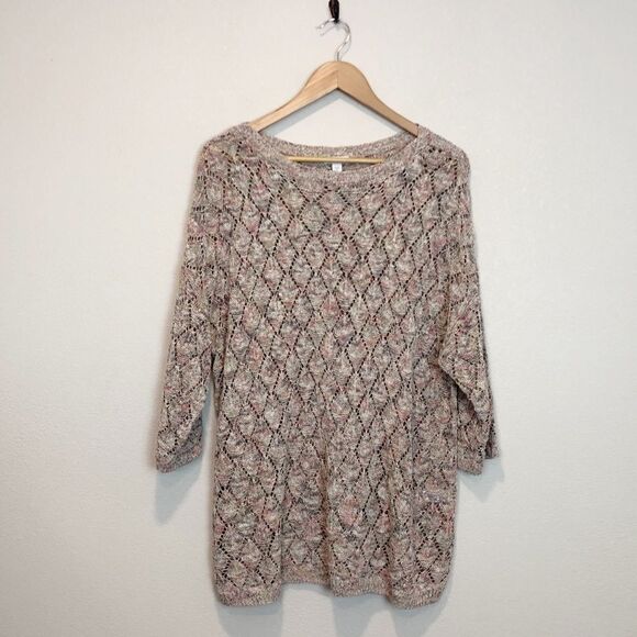 J Jill Crochet Open Knit Diamond Pattern Speckled Sweater in Pebbled Multi Sz XL