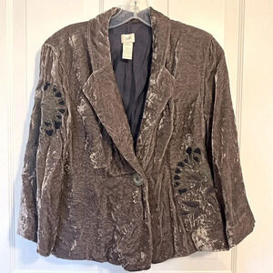 J. Jill Crushed Velvet Embroidered Blazer 3/4 Sleeve Gray Purple Brown 6P