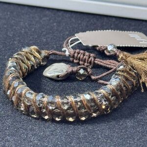J Jill Crystal Beads Wrapped stranded Brown Pull Cord Bracelet Bolo W Tassle