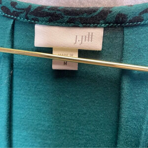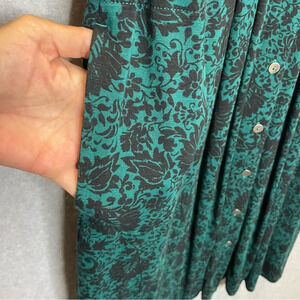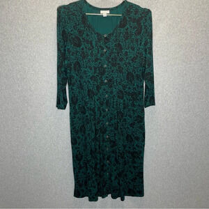 J Jill Dark Romantic Floral Pleated Button Down Soft Stretch Midi Dresss