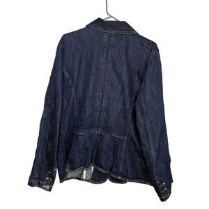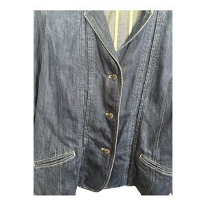 J. Jill Dark Wash Denim Blazer Jacket Size 19 Blue Cotton/Linen Blend Mock Pkts
