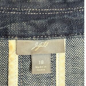 J. Jill Dark Wash Denim Blazer Jacket Size 19 Blue Cotton/Linen Blend Mock Pkts euc aside what appears to be a rust stain on the inside lining shown in pictures doesn’t effect wear smoke free dog friendly home. Plus plus size fall autumn cool weather casual trendy preppy